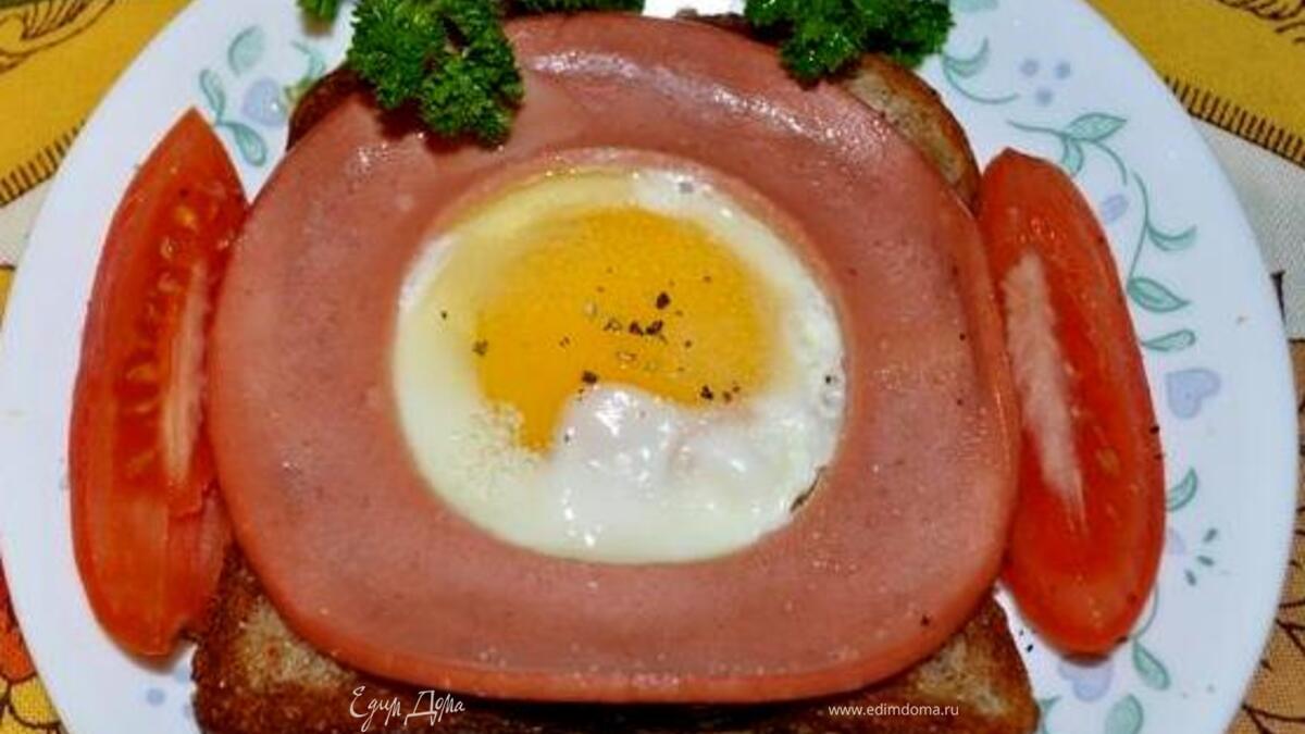 - Шаг 1Хлеб пожарить с двух сторон или разогреть в тостере, колбасу также слегка обжарить, затем, наложив на гренку, вырезать круглой формой середину и вернуть на разогретую сковороду. Осторожно вылить в центр гренки яйцо, жарить на среднем огне, посолить, поперчить. Готовую гренку выложить на тарелку лопаткой, разложив вокруг зелень и украсить помидорками.