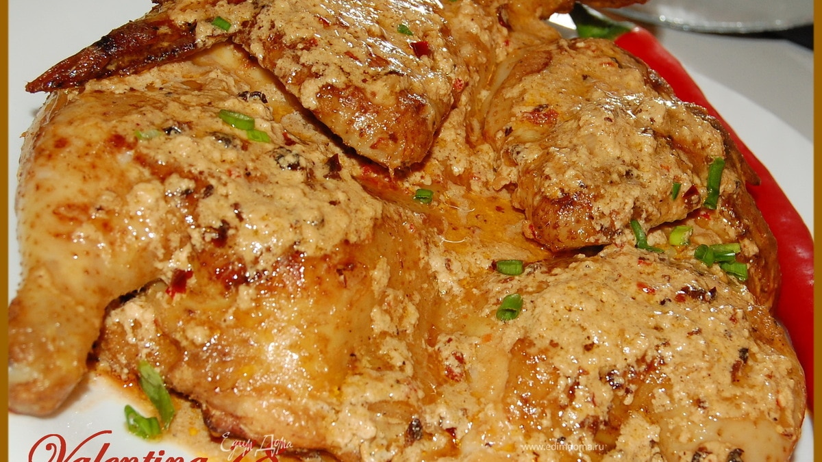 Рецепт этого вкусного и нежного цыпленка, я позаимствовала у одного прекрасного кулинара.Спасибо ей за прекрасный рецепт.