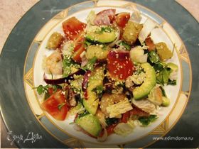Салат ошеломил, сразил, покорил... Легкий, сочный, приятный по вкусовым ощущениям... Вообщем, занесла его в фавориты моего кулинарного "репертуара
