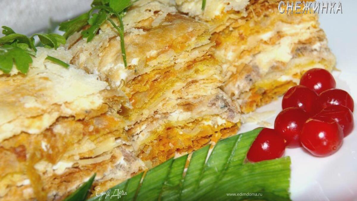 Торт «рыбный» из домашнего слоеного теста