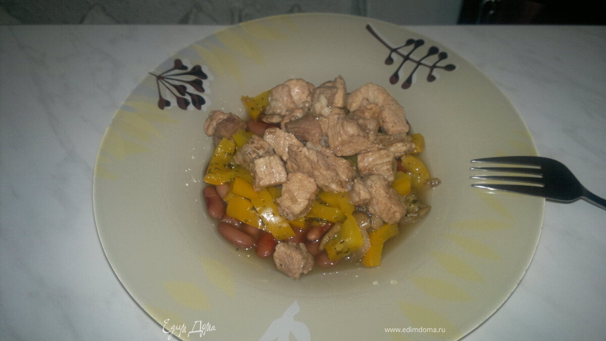 Похлебка из фасоли со свиным окороком, сладким перцем и лесными грибами