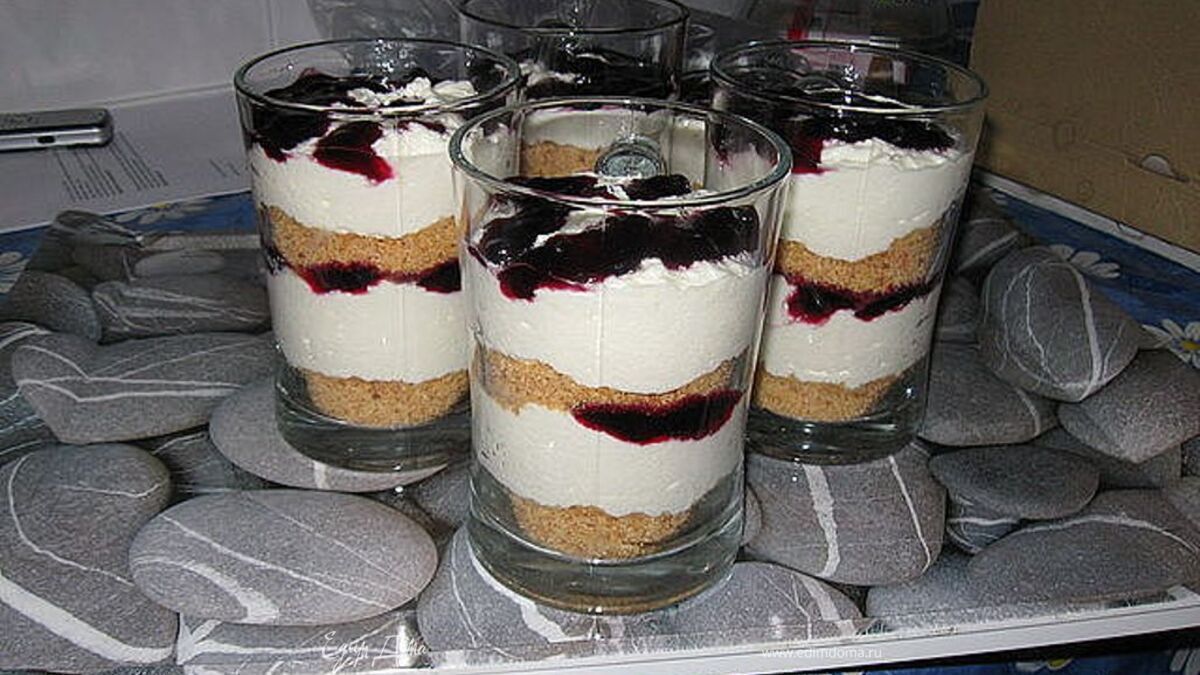 - Шаг 1Делаем крошку: В миксере смешиваем муку, сахар,разрыхлитель и масло, до получения крошки, добавляем желтки и мешаем до получения гладкого песочного теста. Руками разравниваем тесто на пергаменте( не важно какой формы)до тонкого слоя и выпекаем при 180 гр 20 мин до золотистого цвета. Охлаждаем тесто и размалываем в комбайне до крошки, держим закрытой до сборки торта. Приготовление творожного слоя: В микро растворяем шоколад с 1/2 коробочки сливок и размешиваем в гладкую массу,вмешиваем творог.В миксере взбиваем 1 1/2 коробочки сливок с сахаром до получения жестких пиков.Добавляем творожно шоколадную массу и слегка взбиваем.Заполняем этой массой кондитерский шприц. Сборка: На дно креманок или бакалов кладем ложку крошки( я клала 2), выдавливаем творожную массу на крошки, затем 1-2 ложечки варенья, затем еще слой творожной массы и в конце крошку( я делала по другому, сначала крочку,затем творог, затем варенье, затем опять крошку,после крошки творог и варенье. Закрыла пленкой и в холодильник на 2 часа. получилось очень сладко, даже моим сладкоежкам, поэтому в следующий раз положу 2 ложки сахара, вместо варенья возьму тертую клубнику или любой несладкий фрукт и наверное не буду класть шоколад:))))))))))
