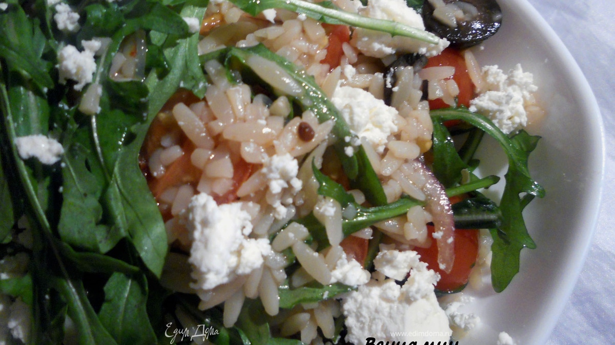 Салат с орзо, руколой и фетой