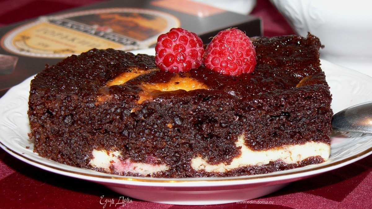 Брауни с творожно-сливочным сыром и малиной