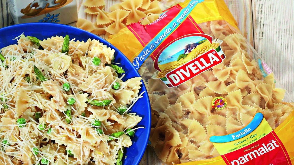 - Шаг 8Добавить спаржу и замороженный горошек. Готовить, пока горошек не прогреется.