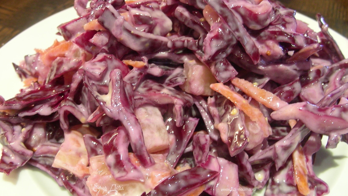 Салат Коулслоу (coleslaw) с краcнокочанной капустой и ананасами
