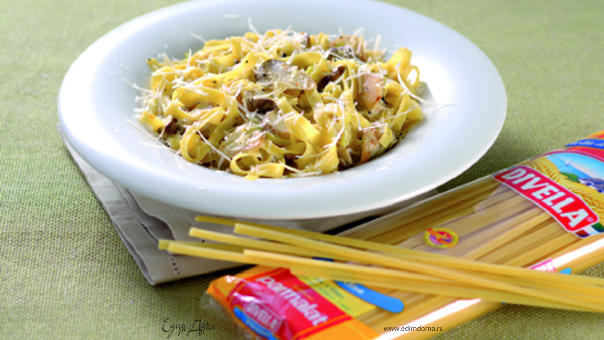 Феттучине с белыми грибами и пореем
