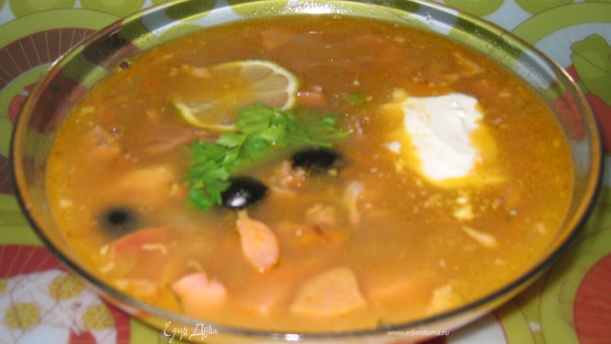 - ПодготовкаСварить бульон из говядины, курицы, языка и субпродуктов. Я обычно оставляю на ночь, чтобы потом убрать застывший жир. Все вареное мясо и сосиски с колбасками порезать. Сразу скажу, что минимальный набор на мой взгляд - мясо, язык, субпродукт, копченость. Далее чем больше мяса, тем лучше. Пожарить до золотистого цвета лук и морковь. Добавить к ним тертые огурцы, томатную пасту, немного бульона, 3 лавровых листа и 5 горошин перца. Тушить минут 20. Затем мясо и зажарку положить в бульон, туда же каперсы и оливки. Варить 15-20 минут. Подавать с лимоном и сметаной.