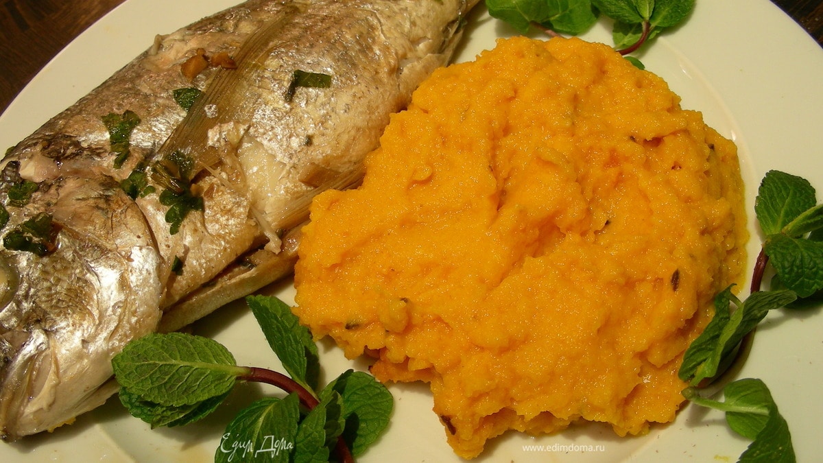 Подаем ее с гарниром по Вашему вкусу, у меня - морковное пюре с имбирем и тмином (ссылка на рецепт Приятного аппетита))