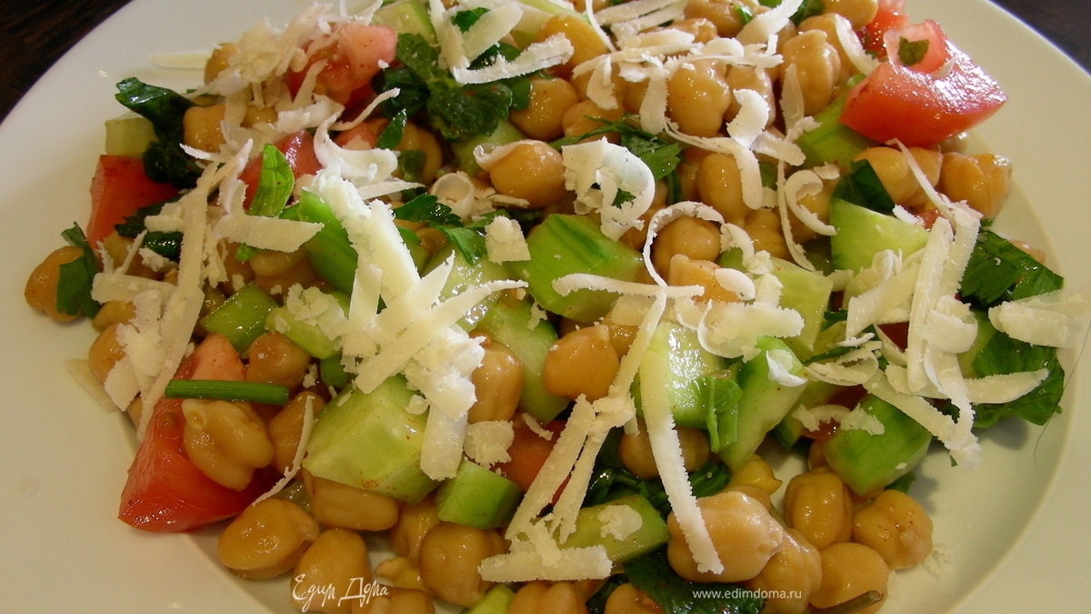 Легкий салат из нута с овощами и травами