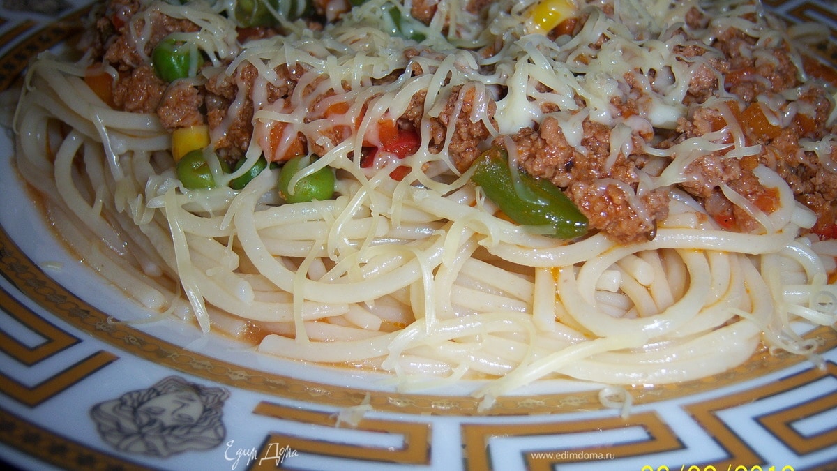 готовые спагетти выкладываем на бдюдо, наливаем подливу и натереть сыр. Приятного аппетита!!!
