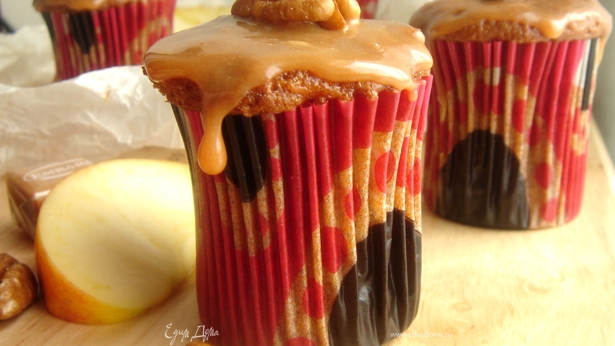 Ещё один чудесный рецепт Ширли Немеш.Мягкие рассыпчатые кексы с ароматом корицы и яблок и вкусной карамельной заливкой.