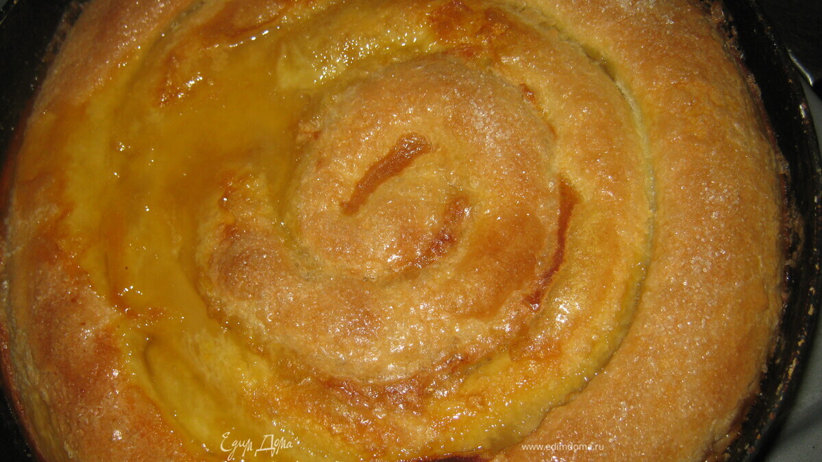 Круглую форму для выпечки застилаем пергаментной бумагой, смазываем её сливочным маслом. Выкладываем рулетики улиткой начиная с серединки. Смазываем сверху взбитым яйцом и посыпаем хорошенько сахаром. Выпекаем при температуре 200 градусов минут 40. Приятного аппетита!
