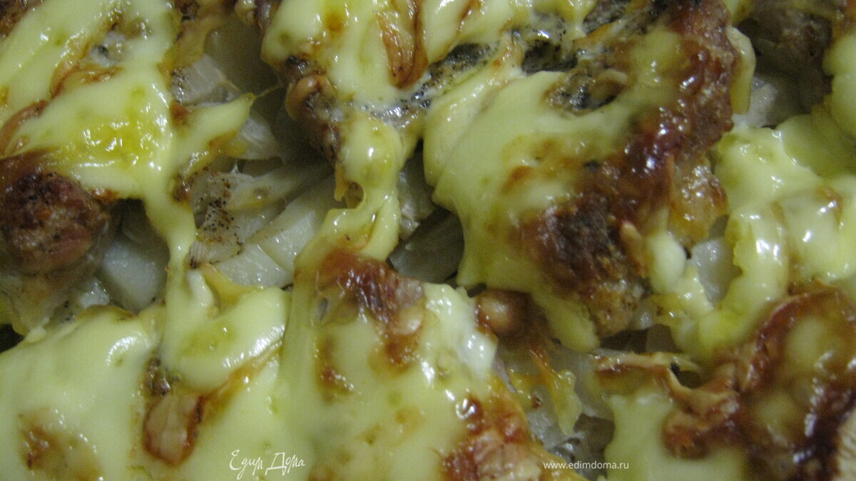 - Шаг 4Сыр трем на терку, смешиваем с майонезом и выкладываем сверху мяса с картошечкой. Выпекаем при температуре 180 градусов минут 40. Приятного аппетита!