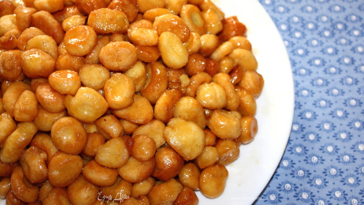 - Шаг 5Мед соединить с сахаром и вскипятить. Мед важно не переварить, иначе испортит вкус блюда. Медово –сахарная масса должна быть гладкой и однородной.