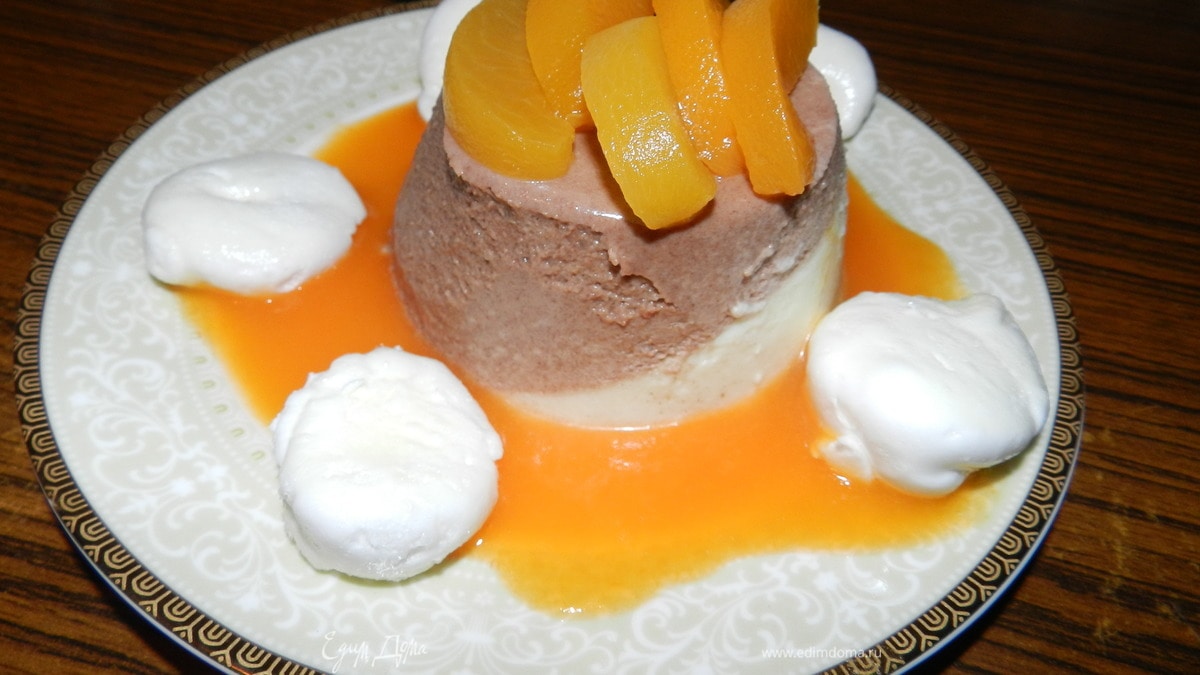 Шоколадно-фруктовый баваруа с маринованными персиками, абрикосовым кули и нежнейшими меренгами