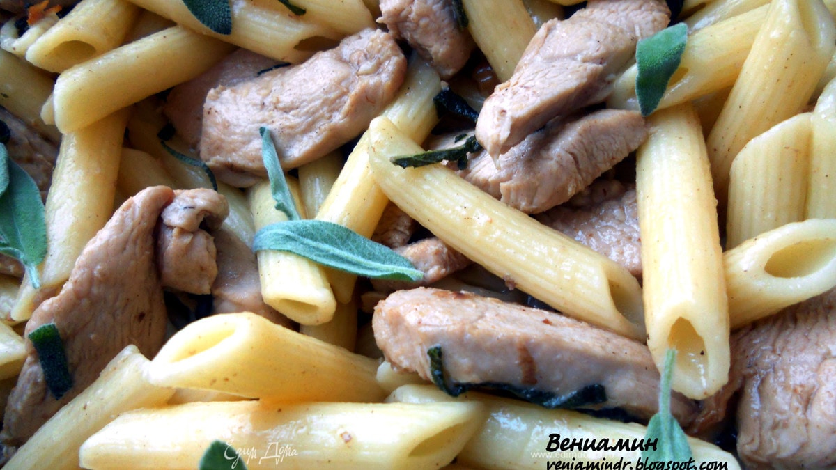 Паста с курицей, грецкими орехами и шалфеем