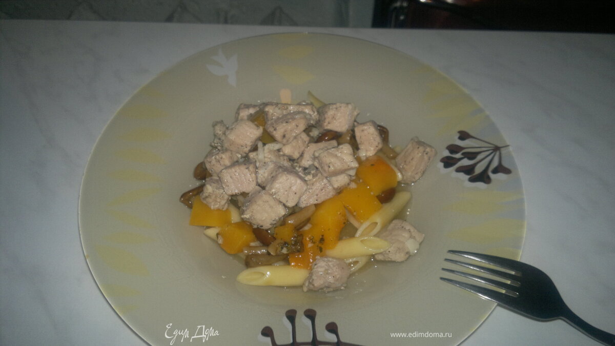 Паста со свининой, тыквой и грибами