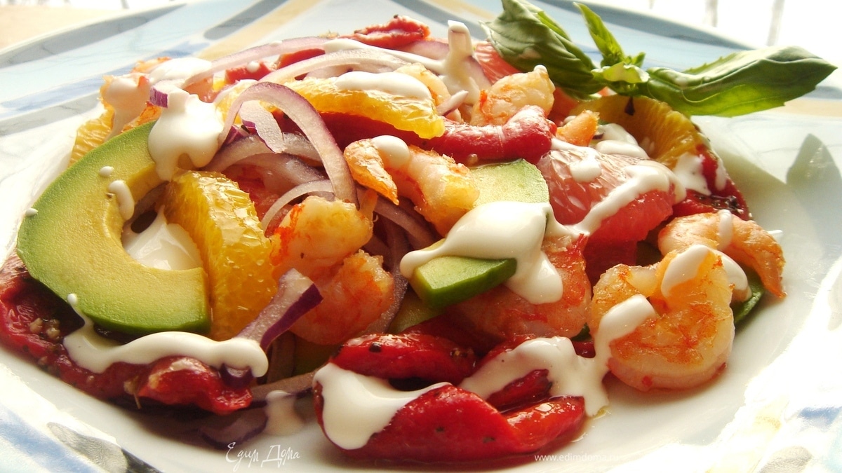 Цитрусовый салат с маринованным перцем,авокадо и креветками