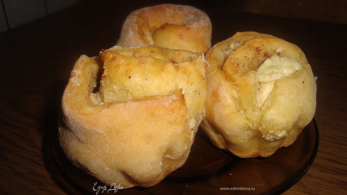 - Шаг 11. Замесить тесто. 2. Смешать творог с сахаром и яйцом. 3. Тесто раскатать и смазать топленным сливочным маслом, посыпать корицей, затем смазать творогом. Свернуть рулет и порезать на равные части. 4. Формочки для мафинов смазать маслом и каждую отрезанную часть поставить в форму. Запекать в духовке заранее разогретой до 200 градусов 10 минут.