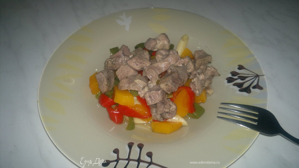 Бедро индейки нарезаем мелки, порционными кусочками, кладем в кастрюлю, зажигаем средний огонь и томим пока не поменяют цвет, добавляем специи и томим еще пару минут, теперь немного воды и тущим 20 минут при закрытой крышке.