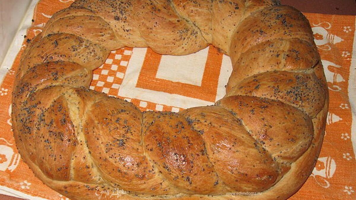 - Шаг 1Тесто замесила в хлебопечке. Готовое тесто разделила на 3 части, каждую часть скатала в колбаску, 2 из 3-х колбасок переплела жгутом( не туго), третью,присоединила к готовому жгуту сбоку.Поставила на расстойку на 20 мин. Смазала яйцом,смешанным с 1 ложкой молока, посыпала маком, выпекала 30 мин при 200 гр.