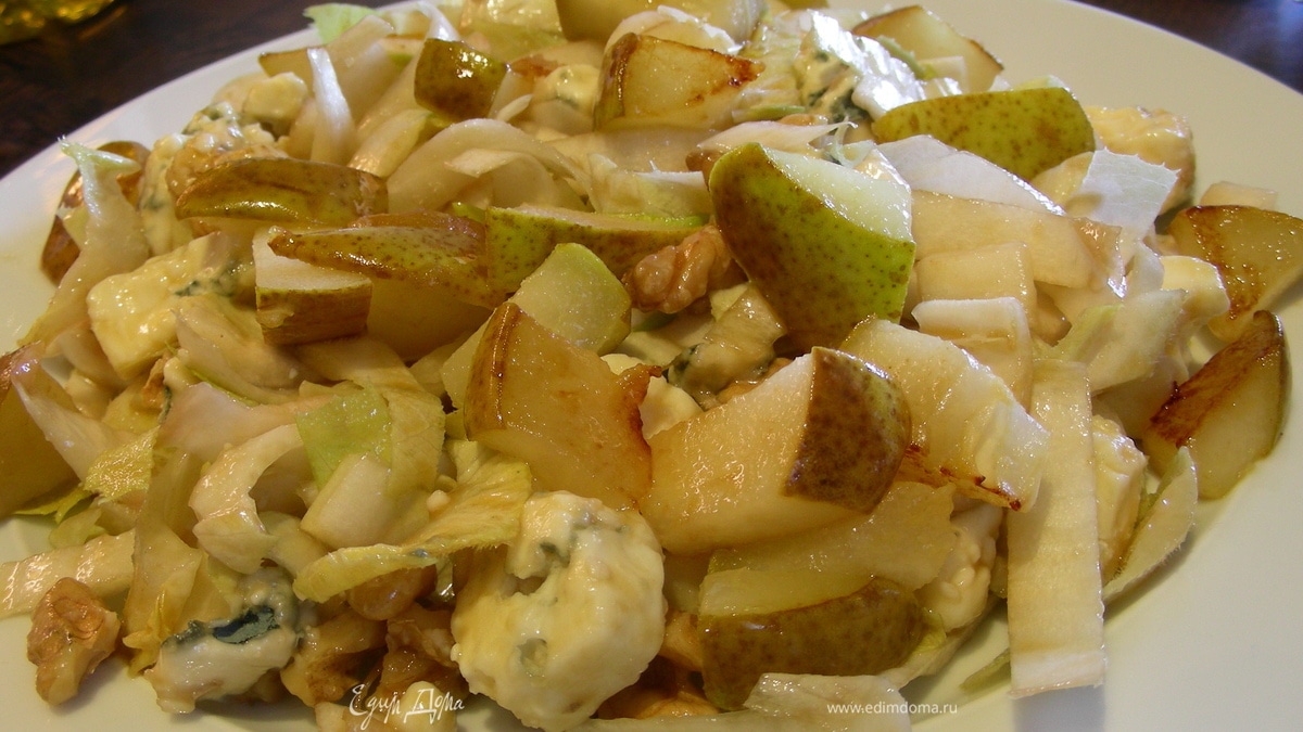 Пикантный салат с грушей, рокфором, цикорием и грецкими орехами