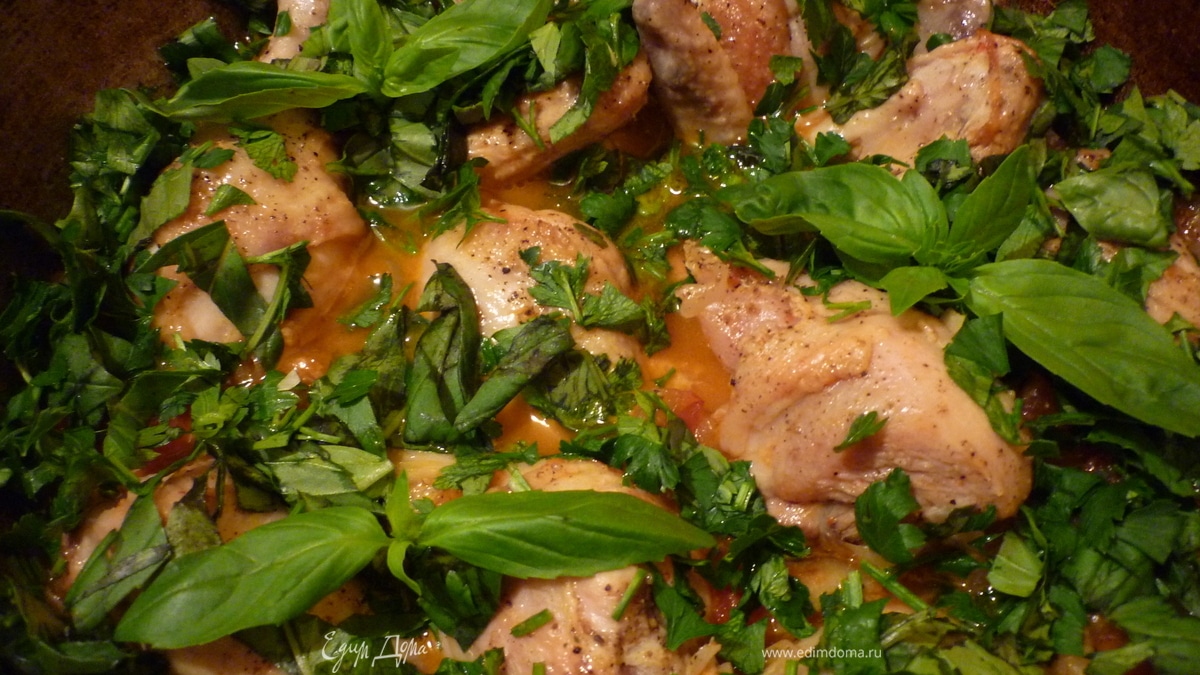 - Шаг 4Зелень нарезать мелко,чеснок нарезать так же мелко.Добавить зелень,чеснок,хмели-сунели к курице,посолите.Подавайте к столу.Приятного аппетита!!!