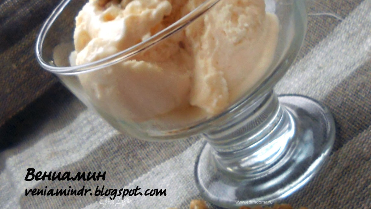 Увлекся я рецептами книги д-ра Эткера "Мороженое". И вот еще одно мороженое, с потрясающей текстурой, приятным творожным послевкусием, а еще и с каремельными орешками. Красота!:)