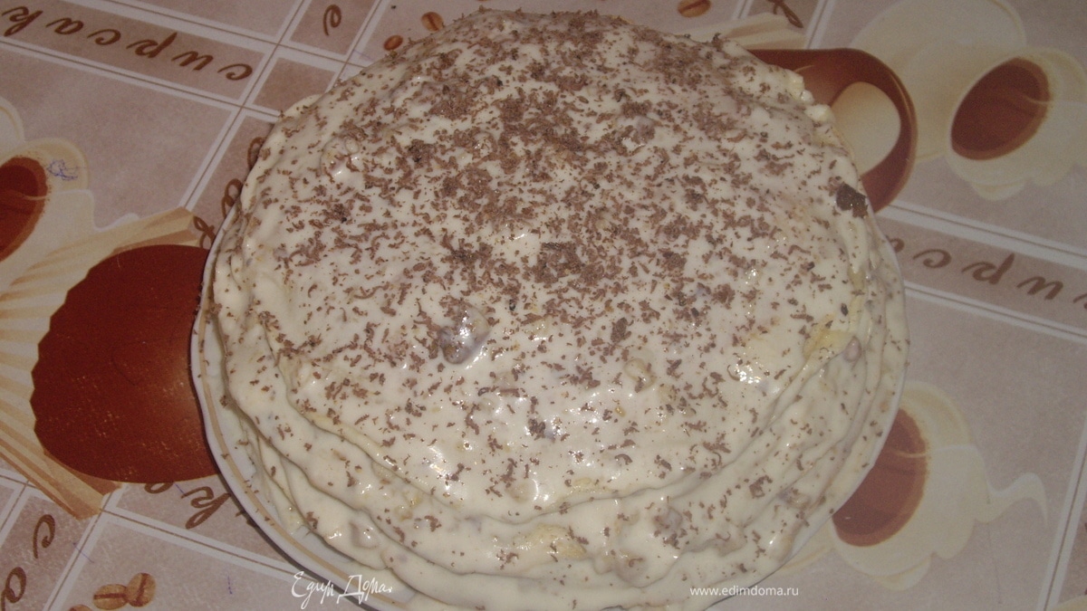 Я его слепила из того что было в холодильнике))) В крем можно добавить лимонный сок, у меня его просто не было дома лимона.В крем я добавила 2 детских классических творожка "ТЕМА", думала он снимет сладкий вкус сгущенки, разницы нет.