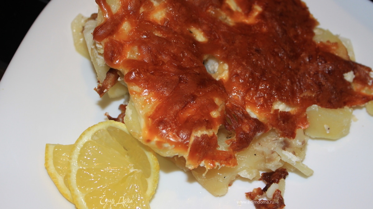Рыба с картофелем, запеченные под сметаной и сливками