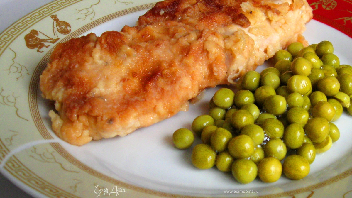 Яйца слегка взбить в глубокой емкости. Запанировать каждый кусочек вначале в яйце, затем в муке (стряхивая излишки), потом вновь - в яйце и ,в завершении, в панировочных сухарях. - Шаг 7