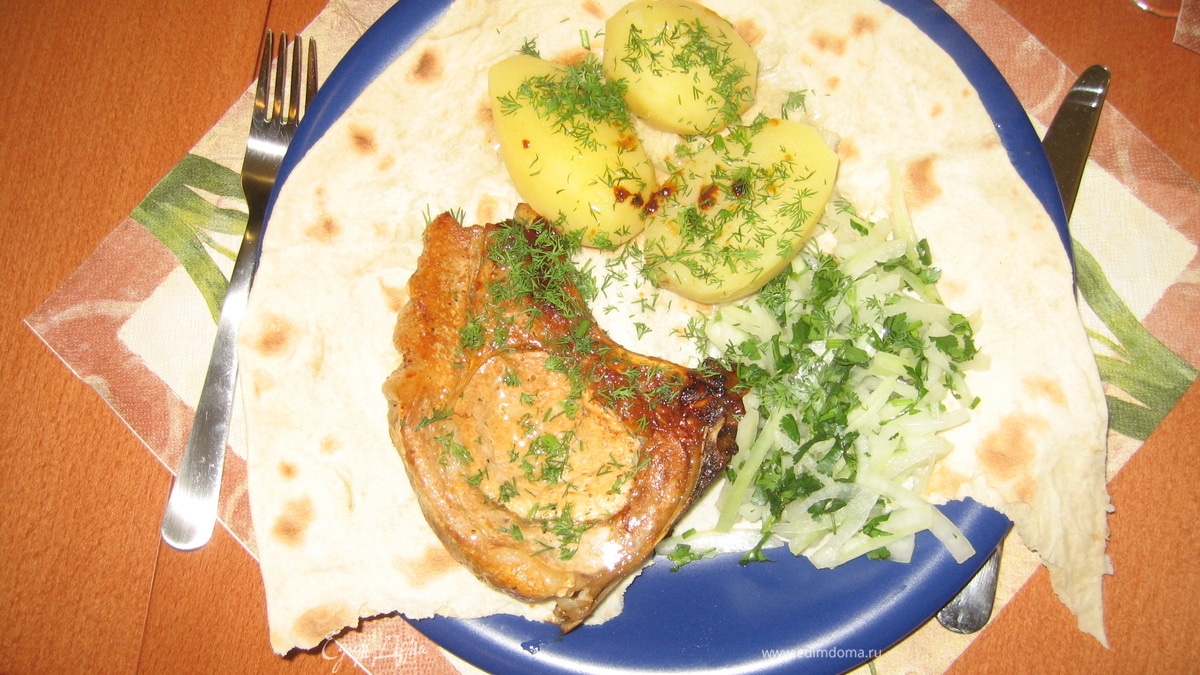 Свиные стейки с луком