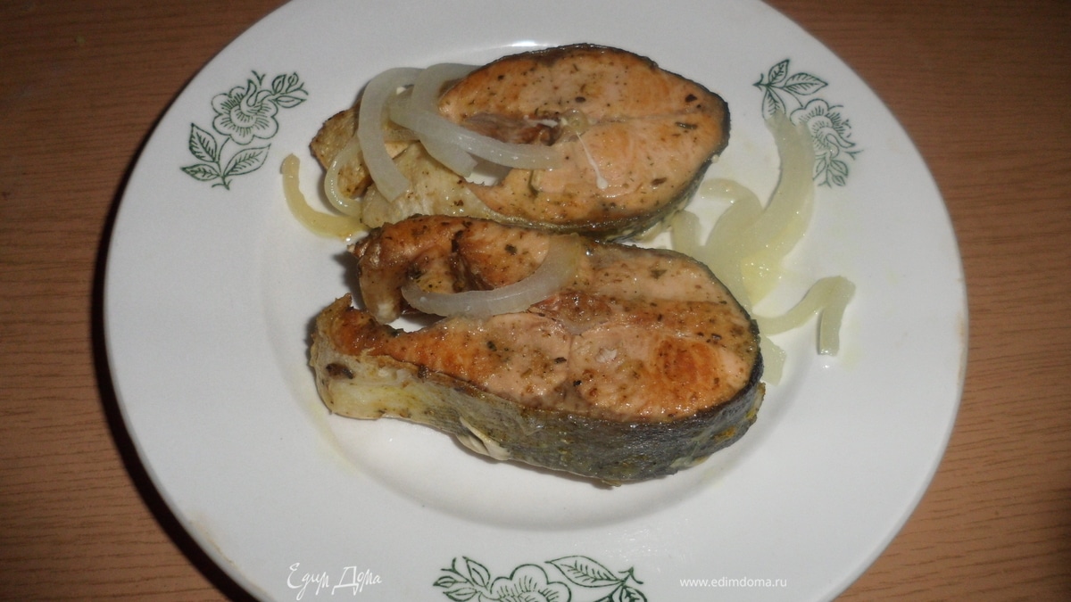 Разогреваем сковороду с маслом и жарим рыбу, добавив репчатый лук. Приятного аппетита!!!
