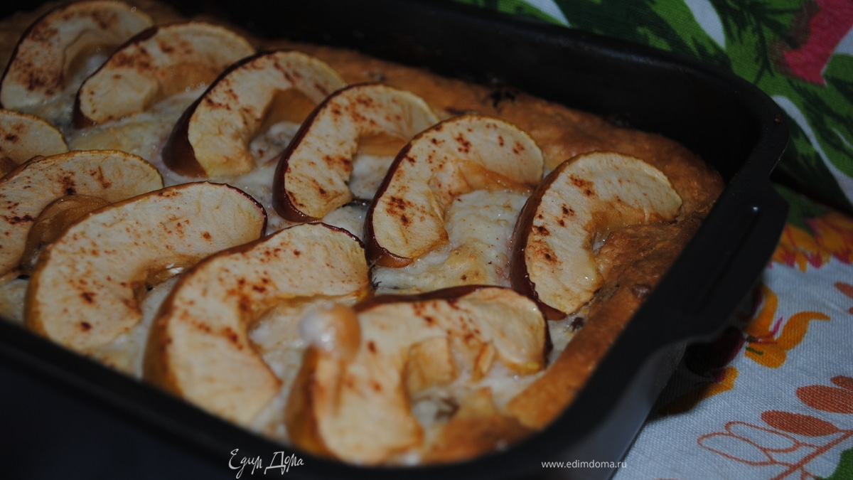 - Шаг 1Овсяные хлопья смолоть в муку и смешать с творогом, добавить яйца, сахар, изюм и корицу. Все тщательно перемешать. Выложить творожную массу в форму, смазанную маслом. Яблоко порезать на дольки и выложить поверх творожной массы. Выпекать в духовке 35-45 мин при температуре 180 градусов.