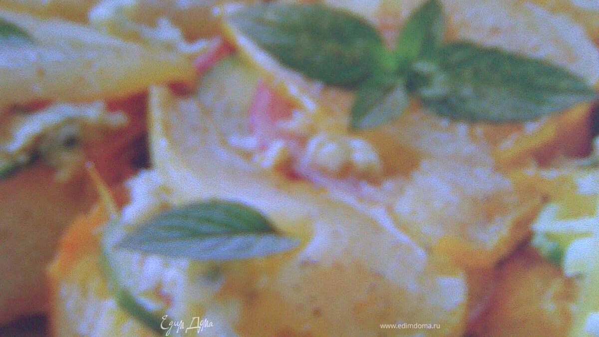 - Шаг 11.Разогрейте духовку до 180 градусов. Порежьте багет на 8 плоских кусков, смажьте каждый кусок оливковым маслом и посыпьте сверху тертым пармезаном. Положите на противень, предварительно застелив его бумагой для выпечки, и запекайте 15 минут. Достаньте и остудите. 2.В сковороде нагрейте оливковое мало, добавьте сахар, кориандр и обжарьте все помешивая в течение минуты. Туда же положите нарезанные дольками груши и обжаривайте минуты 2. 3.Подавая на стол выложите на багет кусочки огурца, лука, сыр с плесенью. Сверху положите кусочки груши и полейте соком. Посыпьте сверху черным перцем и украсьте мятой.