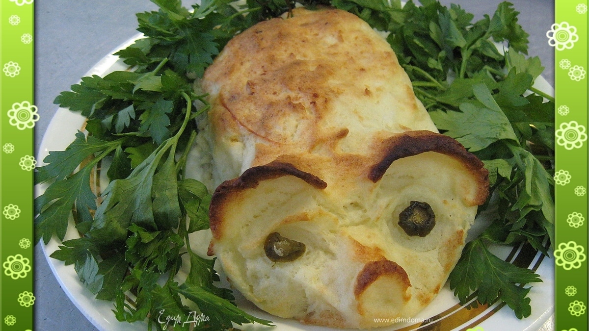 - Шаг 1Отварить картофель в мундире,остудить,очистить,пропустить через мясорубку, добавить 1 яйцо,посолить повкусу, перемешать всё хорошо и сделать из этой массы поросёнка. Запечь в духовке при тем.200гр 8-10мин. Приятного аппетита!!! Для тех кто желает такую запеканку с начинкой, положить во внутрь фарш мясной,обжаренный с луком.