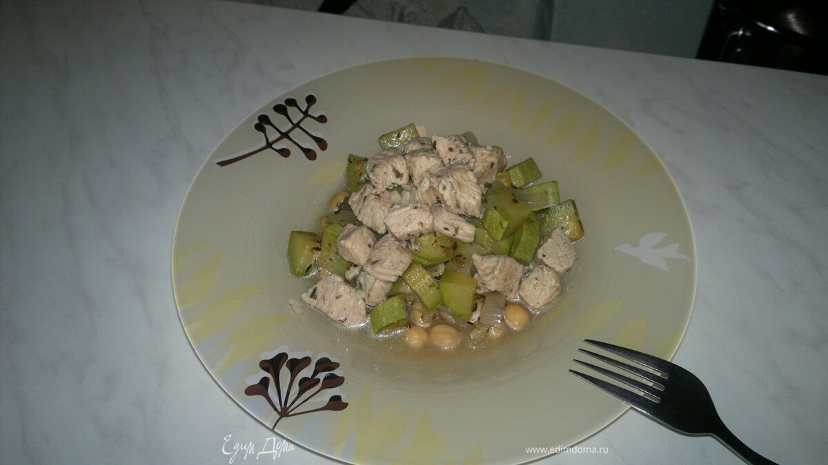 Нутовая похлебка с чесночным бульоном из индейки и кабачком
