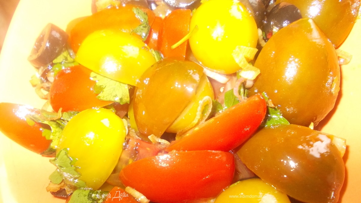 Томатный салат с жареным чесночком