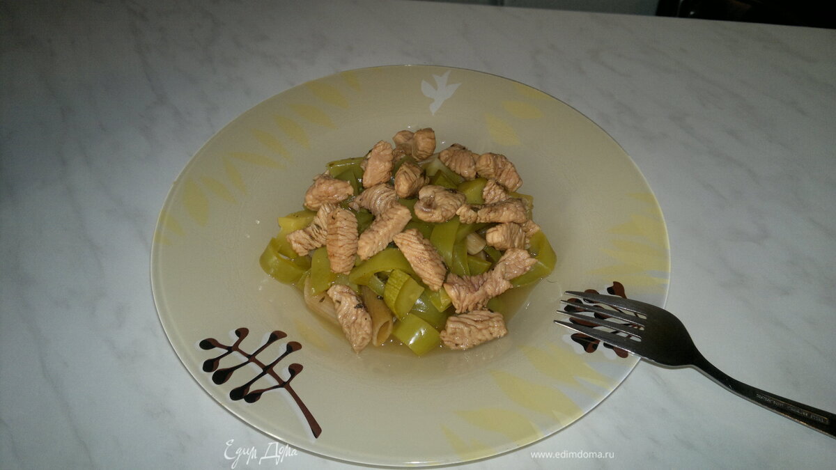 Паста из муки дурум с овощами и грудка индейки с бальзамиком