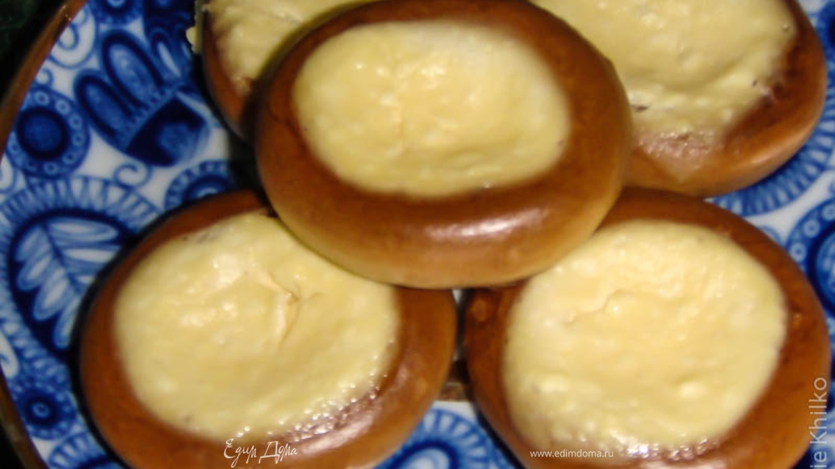 - Шаг 3Выложить сушки на пергаментную бумагу. Ложечкой выложить творожную массу в сушки. Запекать при 160С около 10мин. Смотреть по творогу. На здоровье!