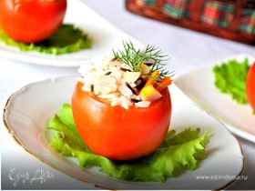 Кефаль тушеная с перцами и белым рисом