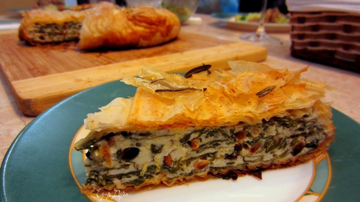 Запеканка в тесте фило — отличное блюдо для лёгкого ужина или праздничного стола. Тесто фило придаёт блюду особую хрустящую текстуру, а сочетание феты, чеддера и шпината создаёт богатый и насыщенный вкус. Кедровые орешки добавляют интересную нотку и делают запеканку ещё более аппетитной. Такая запеканка прекрасно подойдёт для встречи гостей — она не только вкусная, но и эффектно выглядит на столе. Попробуйте подавать её с лёгким салатом из свежих овощей и зеленью.