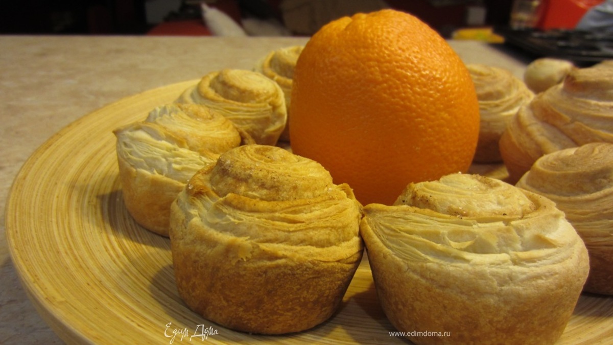 Размораживаем тесто. Из двух пластов получается 12 булочек. Соответственно в два раза больше сахара и корицы. Положите тесто на разделочную доску или стол и накройте пленкой (можно целофановыми пакетами. - Шаг 3