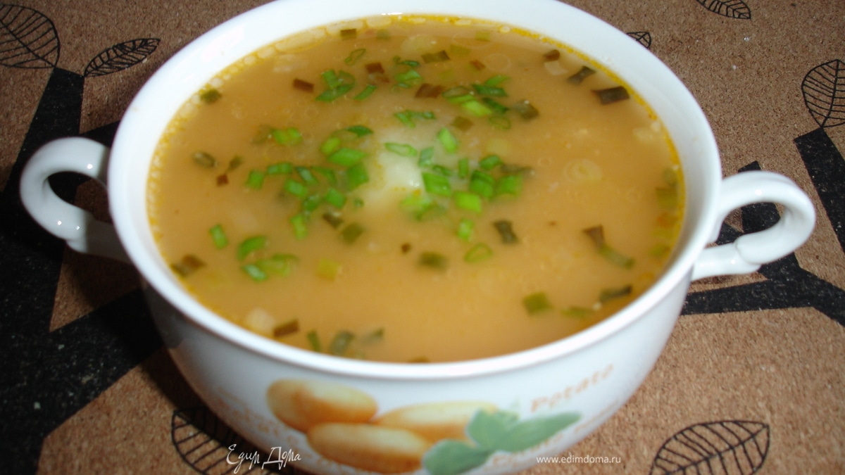 Суп разлить по тарелкам, положить туда же пюре, бекон, украсить зеленым луком