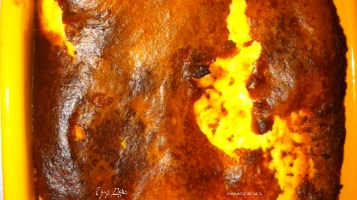 щедро смазать сливочным маслом овальное блюдо для духовки, выложить на дно в один слой чернослив или курагу. вылить сверху тесто, запекать 30-40 минут. охладить час или два и подавать. Очень хорош на следующий день на завтрак )))