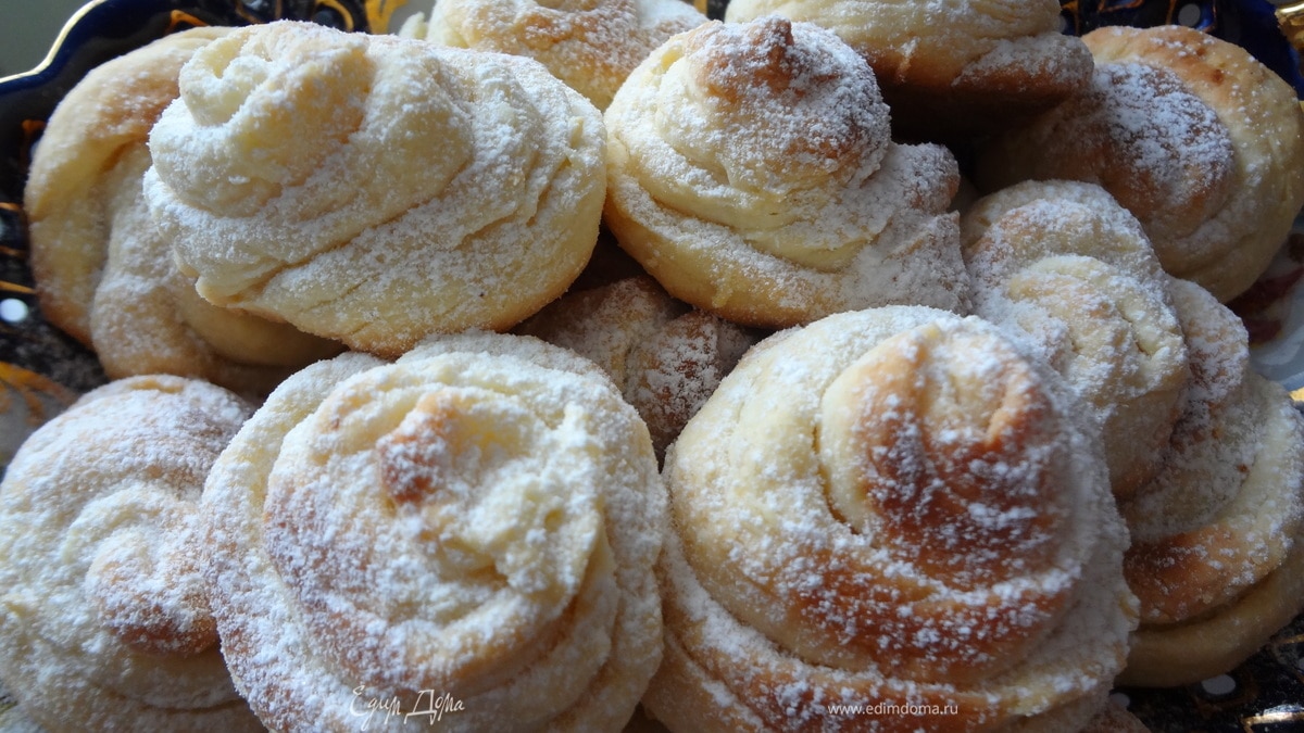 Выпекать в разогретой духовке при 180 градусах минут 15-17. Готовые розочки посыпать сахарной пудрой.