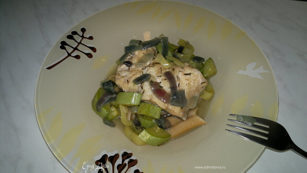 Паста с рыбой на подушке из овощей и специй