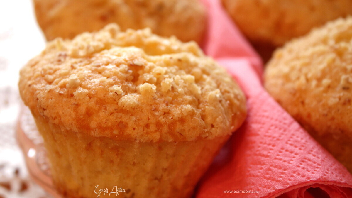 - Шаг 7Распределить тесто по формочкам, наполняя их на 2/3 и сверху посыпать штрейзелем.