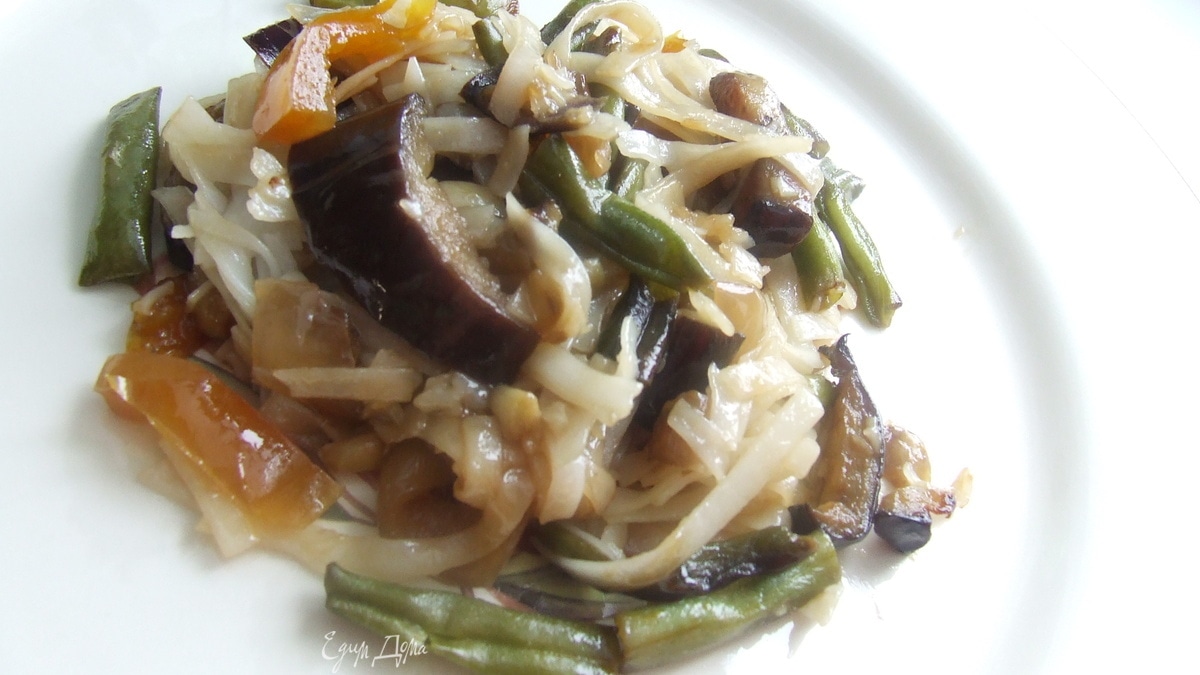 Аккуратно перемешать рагу с лапшой и можно подавать! Приятного аппетита!